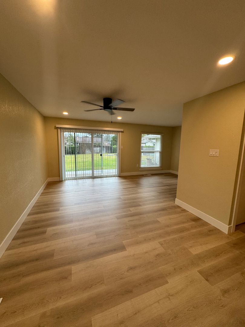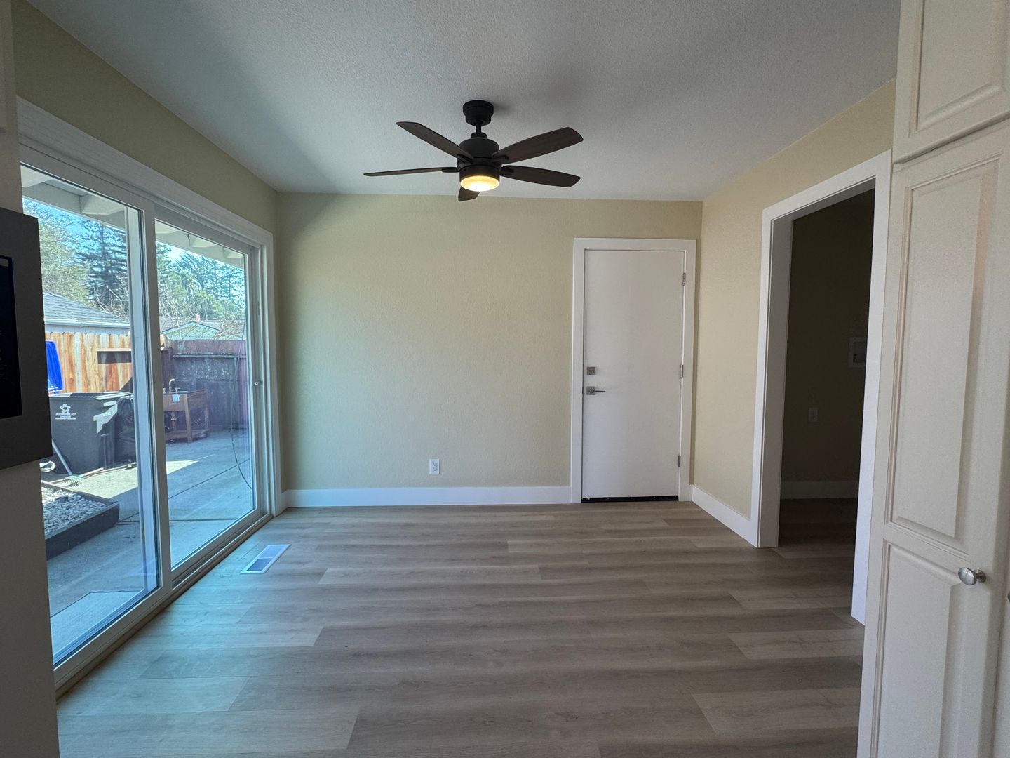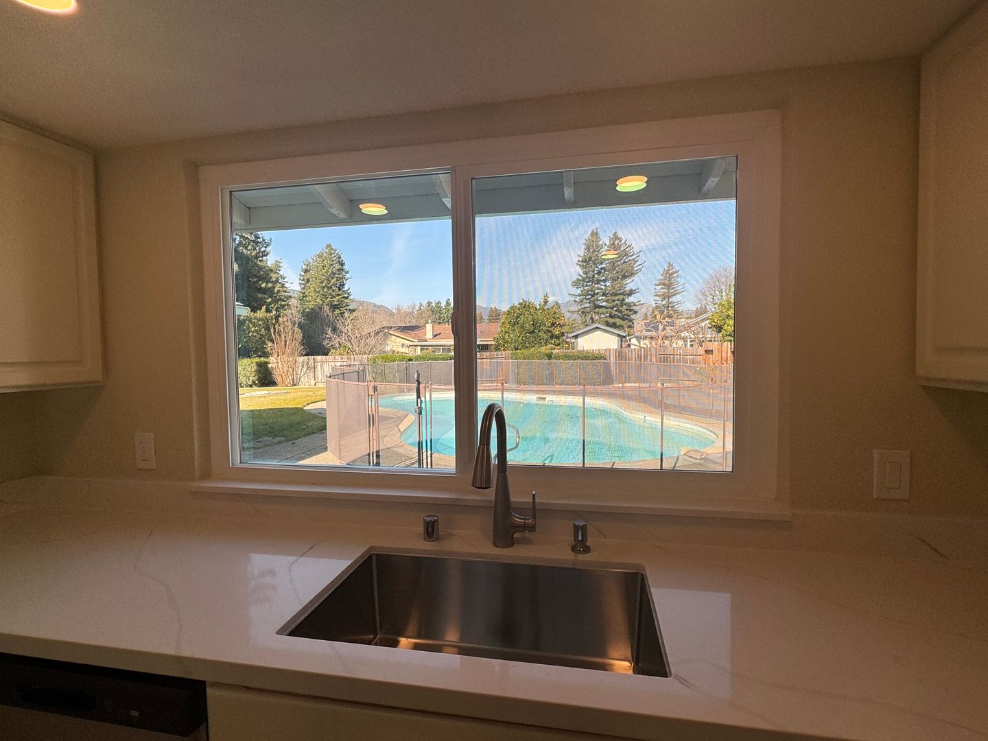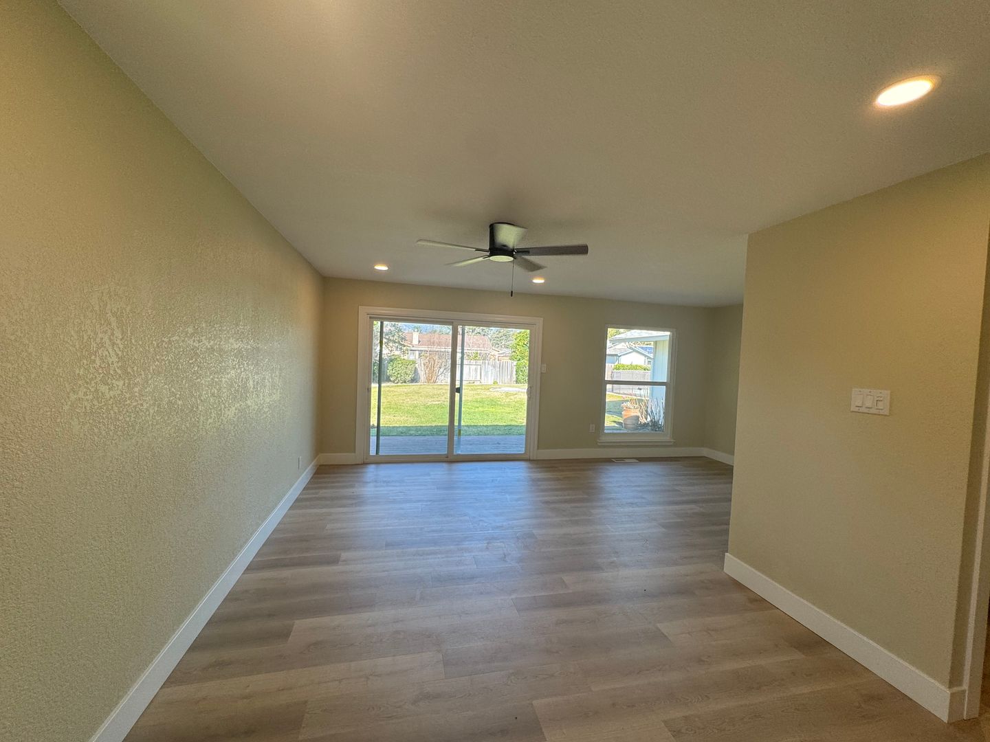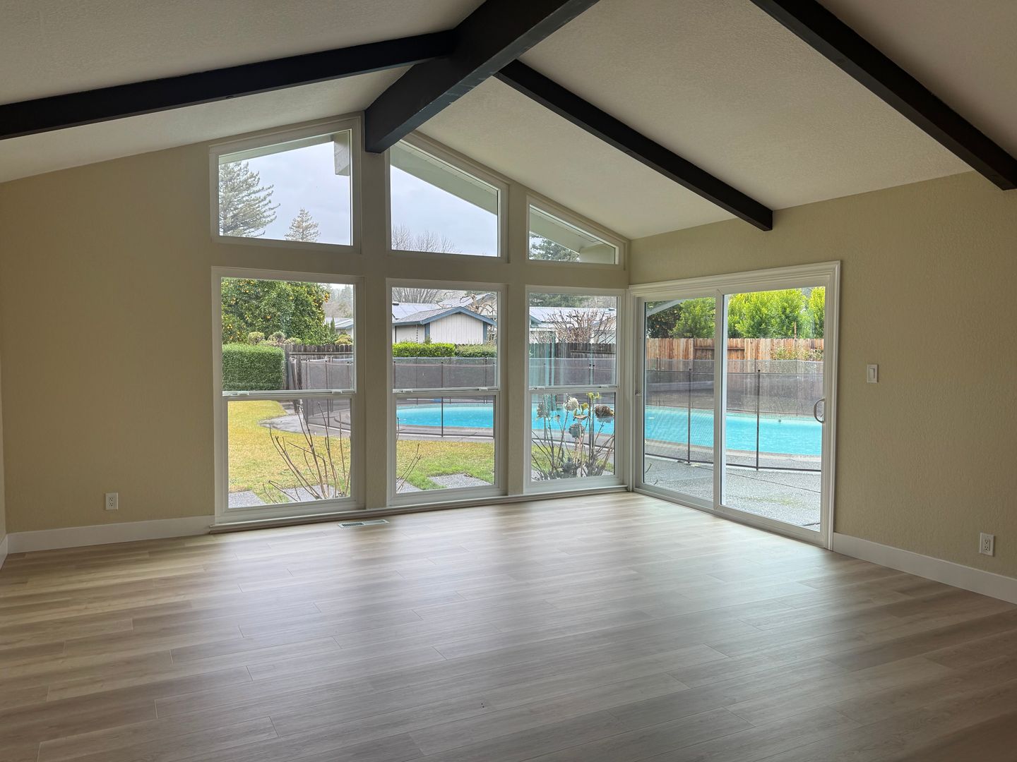 Dining room with a slider leading out to the patio and pool, making entertaining a breeze.