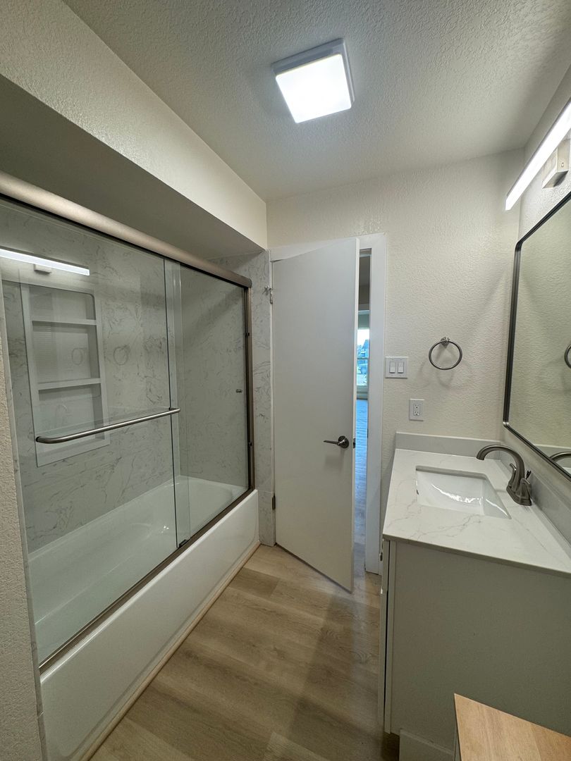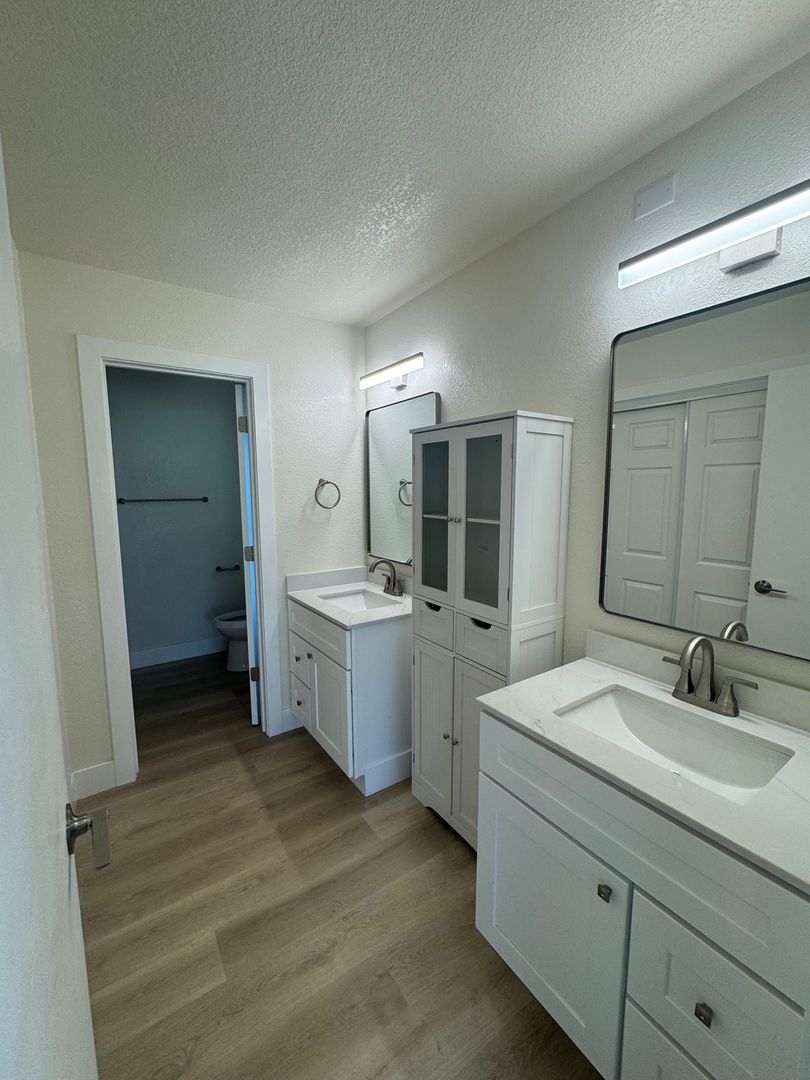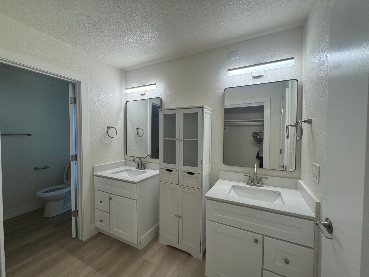 The second bathroom, off the main hallway, has a separate door leading to the backyard, for easy access to the pool.