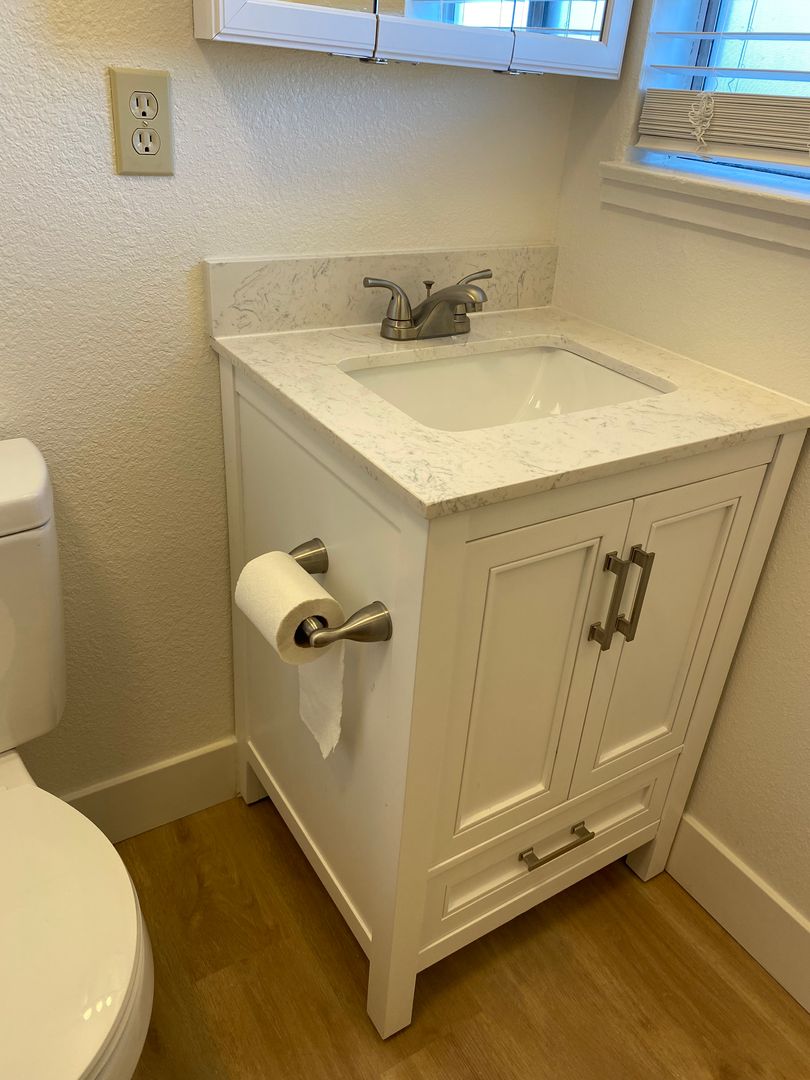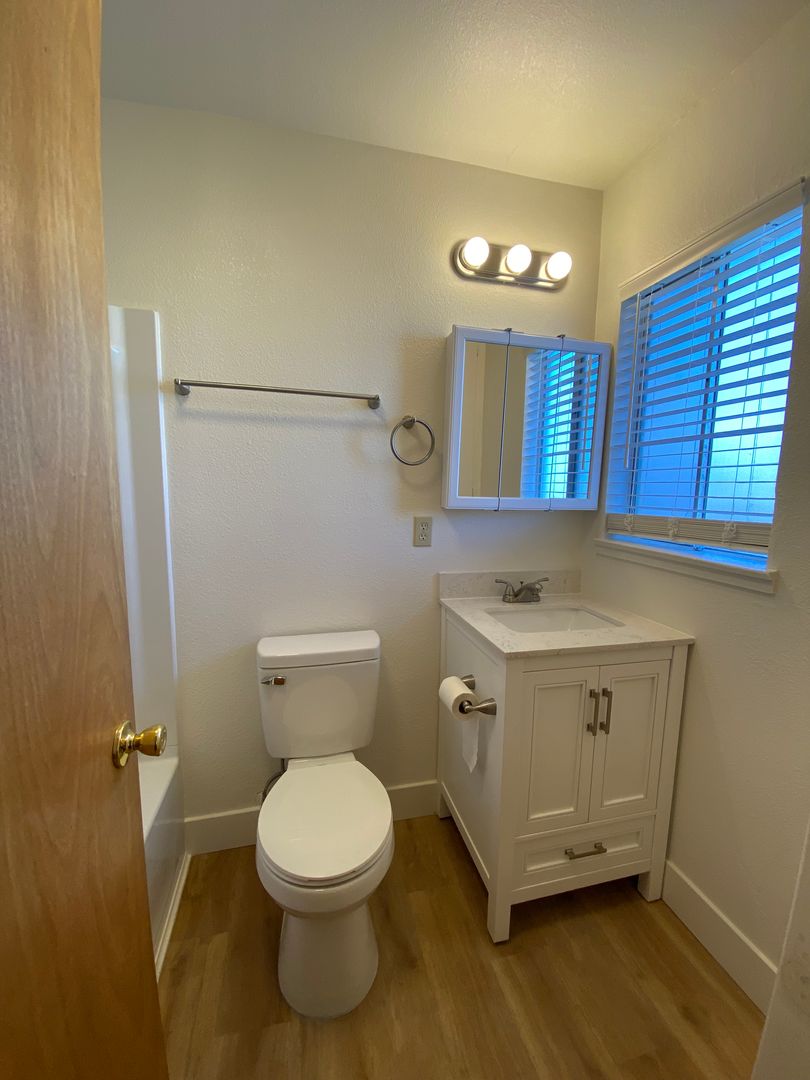 Bathroom has been modeled with full tub/shower combo. Private back porch area that backs up to RV Storage lot and area for the kiddos to play.