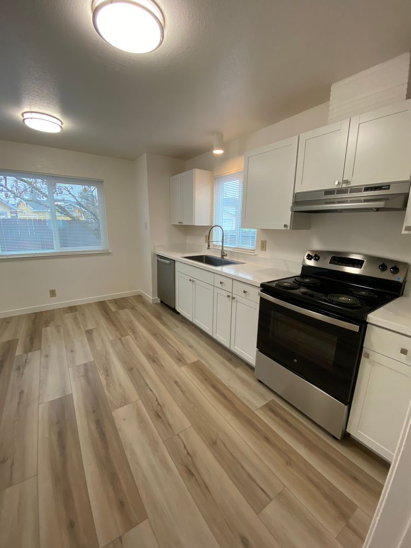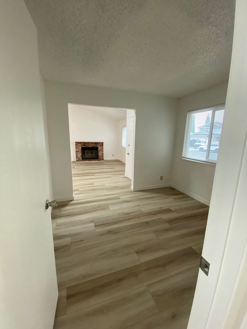 This home offers a formal living/dining room combo with fireplace, as well as a separate family room. The remodel includes full paint, inside and out, and seamless laminate flooring throughout. Both bathrooms have been updated, and the galley-style kitchen has been completely upgraded, featuring new cabinets and all-new appliances, along with a well-lit breakfast nook. This home has shared space galore.