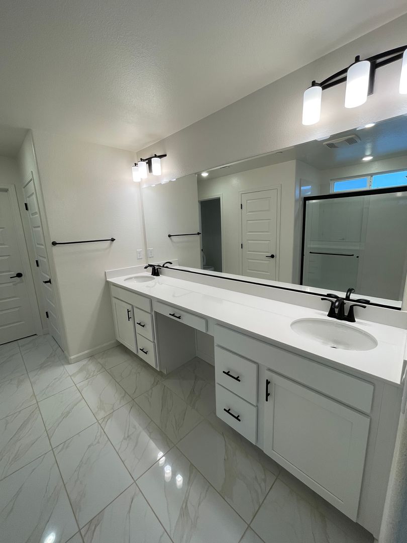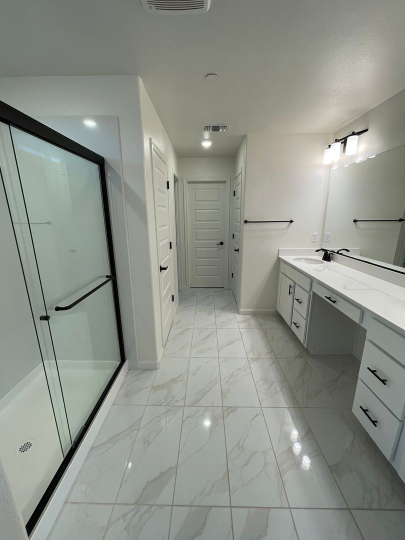 Luxurious master bedroom suite with large walk-in closet. Stunning master bath with stand-up shower and bathtub.